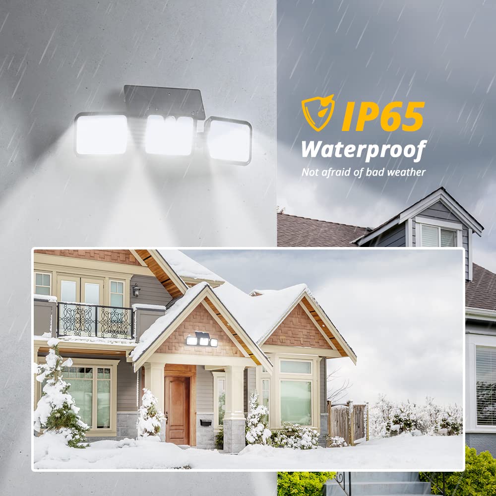- Esistente alle Intemperi – Questa Lampada Solare per esterni è realizzata in resistente materiale ABS, questa luce di sicurezza a 3 teste è resistente alle intemperie. La protezione impermeabile IP65 assicura che la luce di sicurezza a 3 teste non venga danneggiata da pioggia, nevischio o neve. È appositamente progettato per resistere a condizioni meteorologiche estreme e fornire maggiore sicurezza per la tua casa